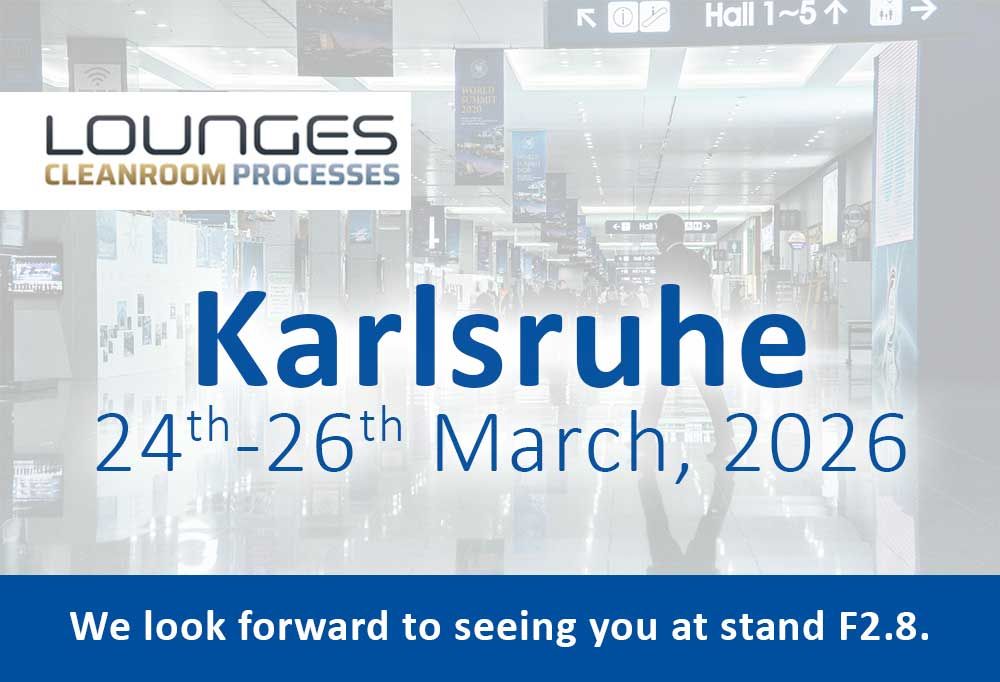 Venez nous rendre visite au salon LOUNGES Cleanroom Processes du 24 au 26 mars 2026 au parc des expositions de Karlsruhe, stand F2.8.